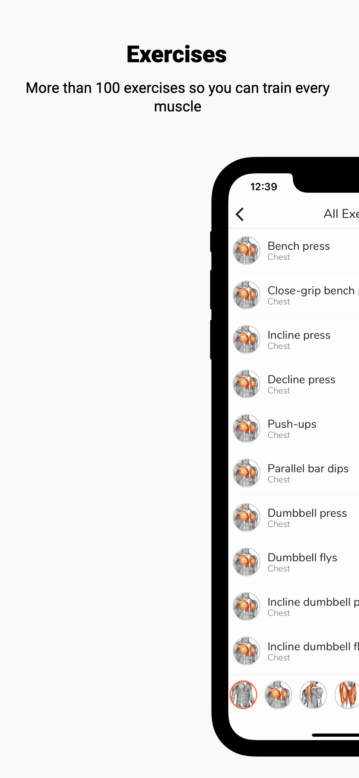 You will find a data base with more than 100 Exercises, more than 30 Workouts, 8 Challenges, Stretches...